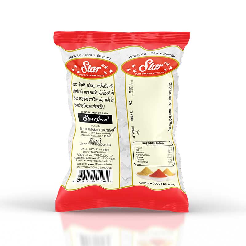 Star Mishri are the sugar squares used widely in Indian Pujas and customs because of their purity. It is naturally extracted from sugarcane and is chemical-free.